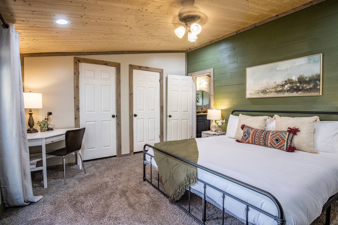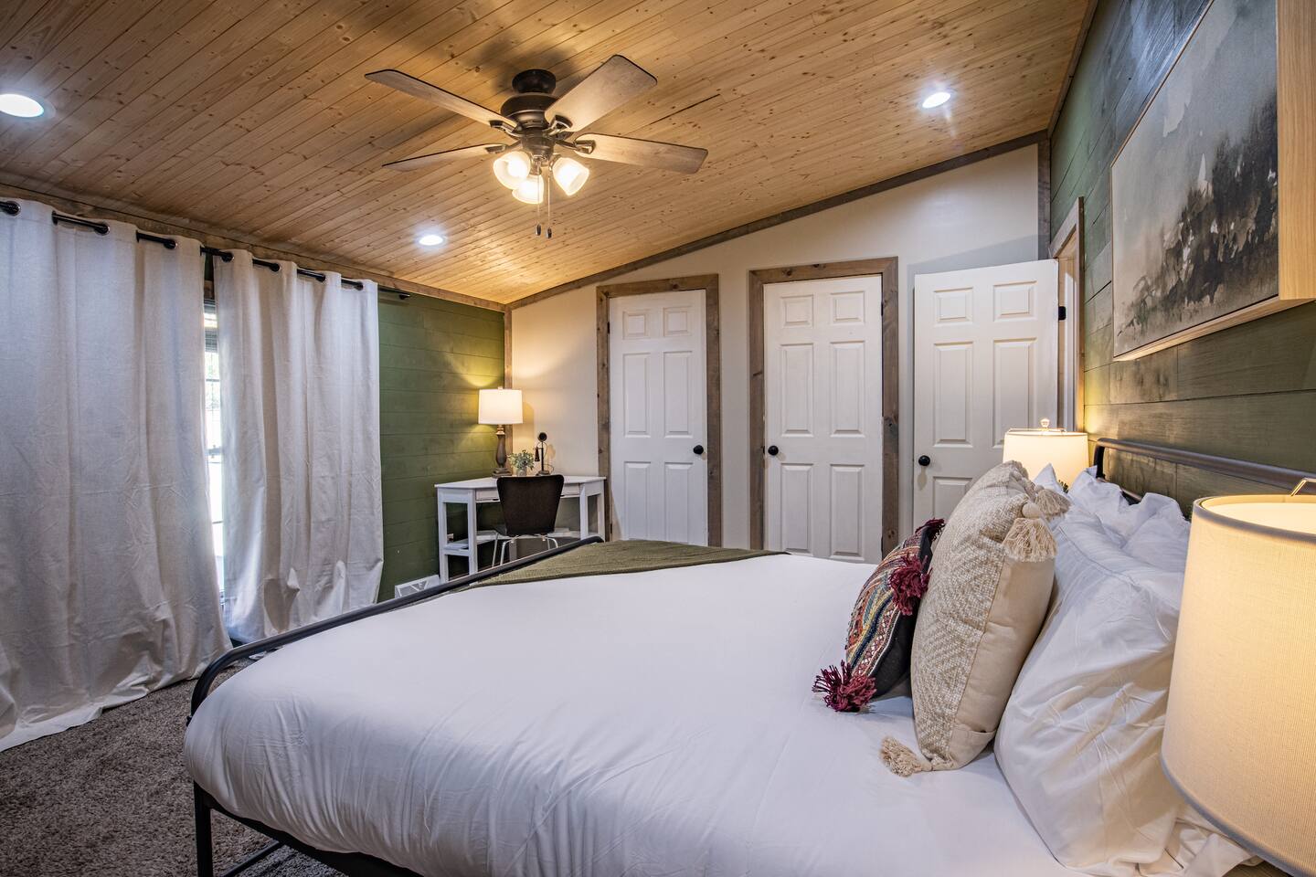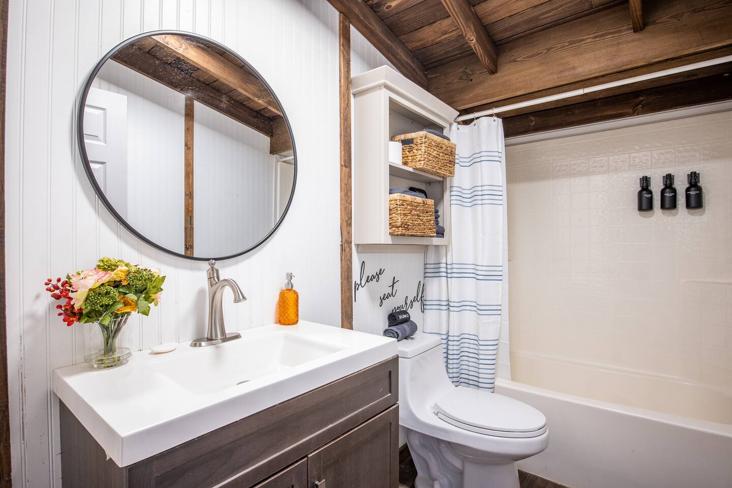You will be provided with a touchpad keyless entry to the house. There are two non-occupied sheds on the property that guests won't have access to. The keypad is located at the front door for a simple keyless entry. The entry code will be provided to you 24 hours before your arrival. The code is changed after every guest We provide a complimentary starter pack for guests with hand soap, toilet paper, paper towels, dishwasher pods, and trash can liners. We recommend you bring additional items appropriate for your stay duration. The drive to the house is accessible with GPS please be on a lookout for a directions sign pointing towards our house. The last hundred yards of the road leading to our place is a well-maintained gravel road accessible by regular vehicles year-round. Please note that there are two security cameras located at the front and the back of the house facing the front entrance and backyard. There are no cameras inside the house.