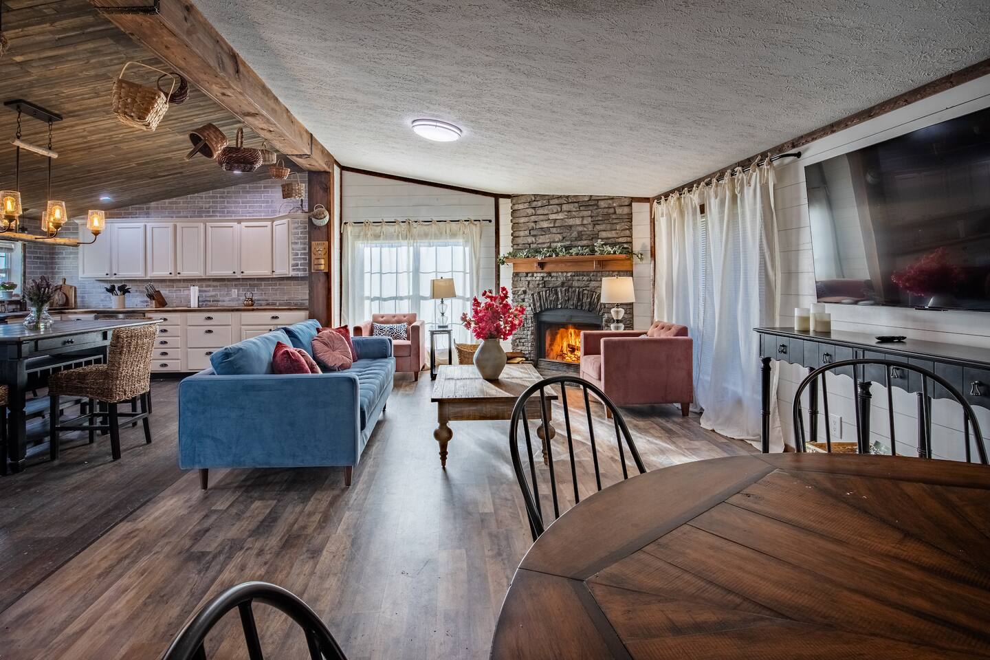 Experience an unforgettable getaway, offering a pure haven for unwinding and serenity. Explore the captivating NewRiverGorge National Park and embrace thrilling pursuits like Class V whitewater rafting, hiking through scenic trails, rock climbing adventures, biking excursions, and ziplining, all within mere minutes. Bask in the daytime sunshine and relish the nighttime sky's starry sights by the firepit, or enjoy a cup of hot cocoa by the fireplace - all at our family-friendly Thuja Hideaway.